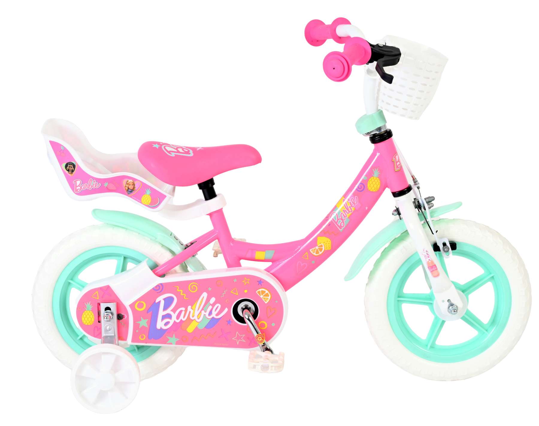 De afneembare zijwielen geven extra stabiliteit tijdens de eerste meters, en als het fietsen steeds beter gaat, haal je ze eenvoudig weg. Het stuur en zadel zijn in hoogte verstelbaar, zodat de fiets comfortabel meegroeit en extra lang mee kan. Voor extra speelplezier heeft deze Barbie fiets een handig mandje voor kleine spulletjes én een poppenzitje, zodat de favoriete pop of knuffel gezellig mee kan op avontuur.