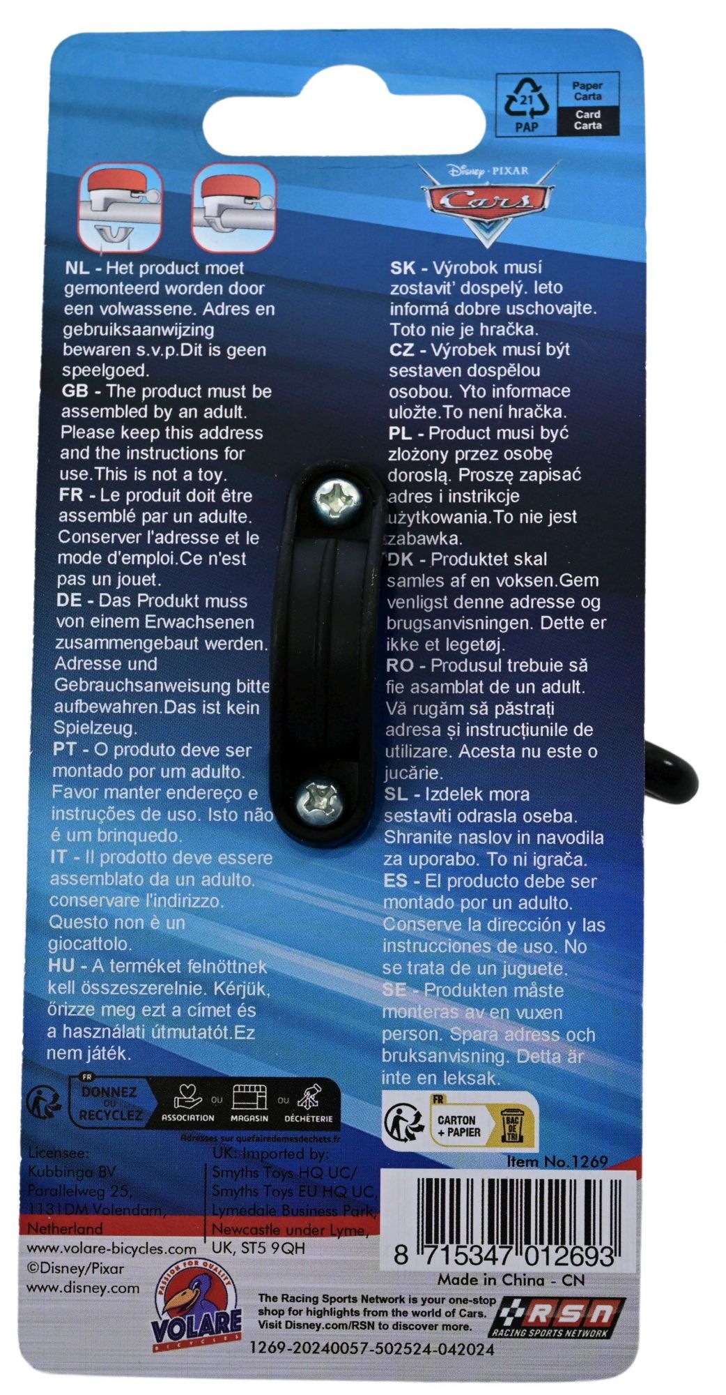 Deze coole Disney Cars Fietsbel is makkelijk te bevestigen aan de fiets van iedere Disney-fan! Laat je fietsbel klinken, zodat iedereen weet dat je de hoek om komt. Ring-ring!