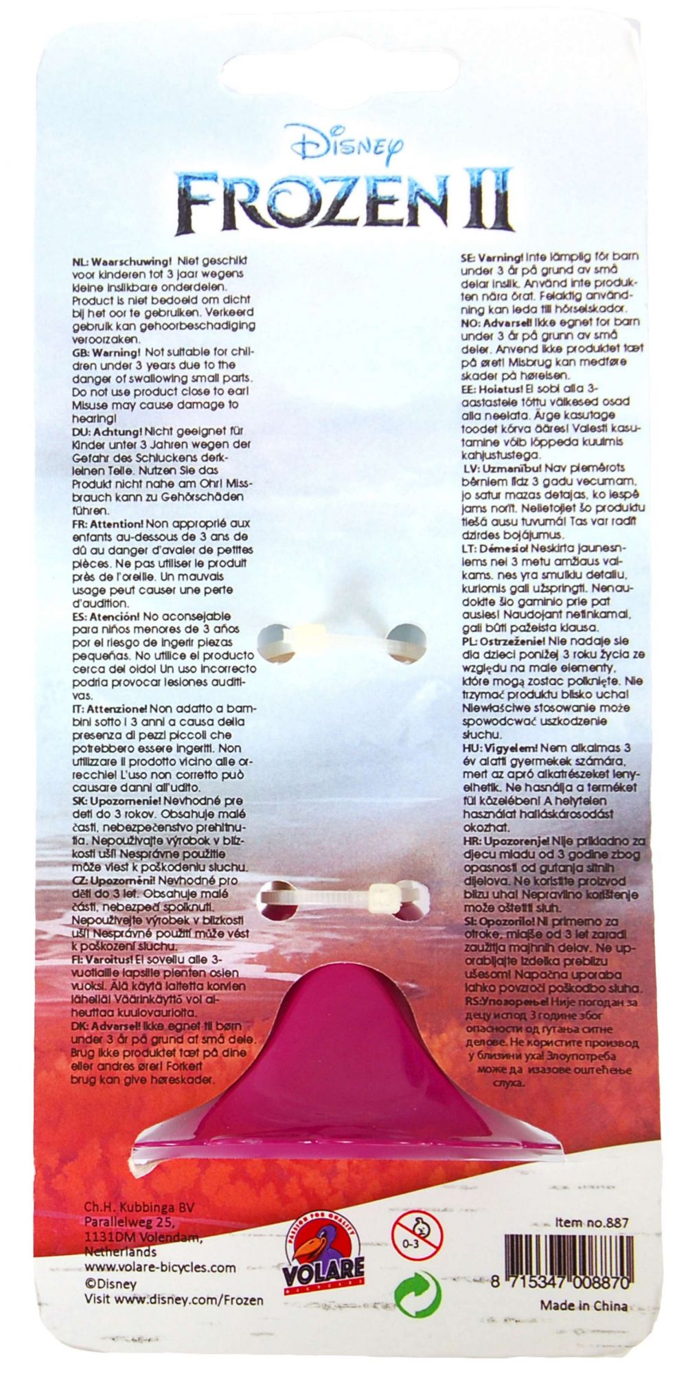 Deze prachtige Disney Frozen 2 Fietstoeter is makkelijk te bevestigen aan de fiets van iedere Frozen-fan! Laat je toeter klinken, zodat iedereen weet dat je de hoek om komt. Toet-toet!