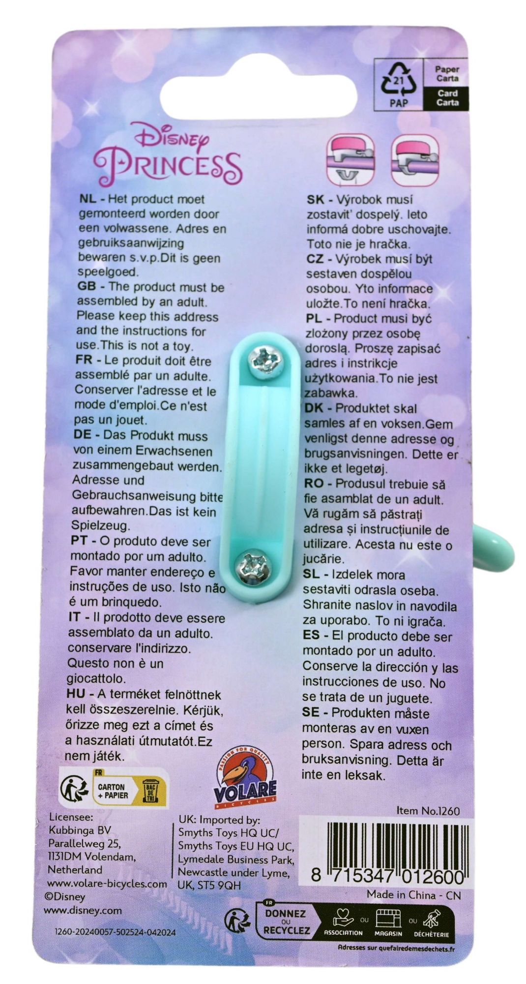 Deze coole Disney Princess fietsbel is makkelijk te bevestigen aan de fiets van iedere Princess-fan! Laat je fietsbel klinken, zodat iedereen weet dat je de hoek om komt. Ring-ring!