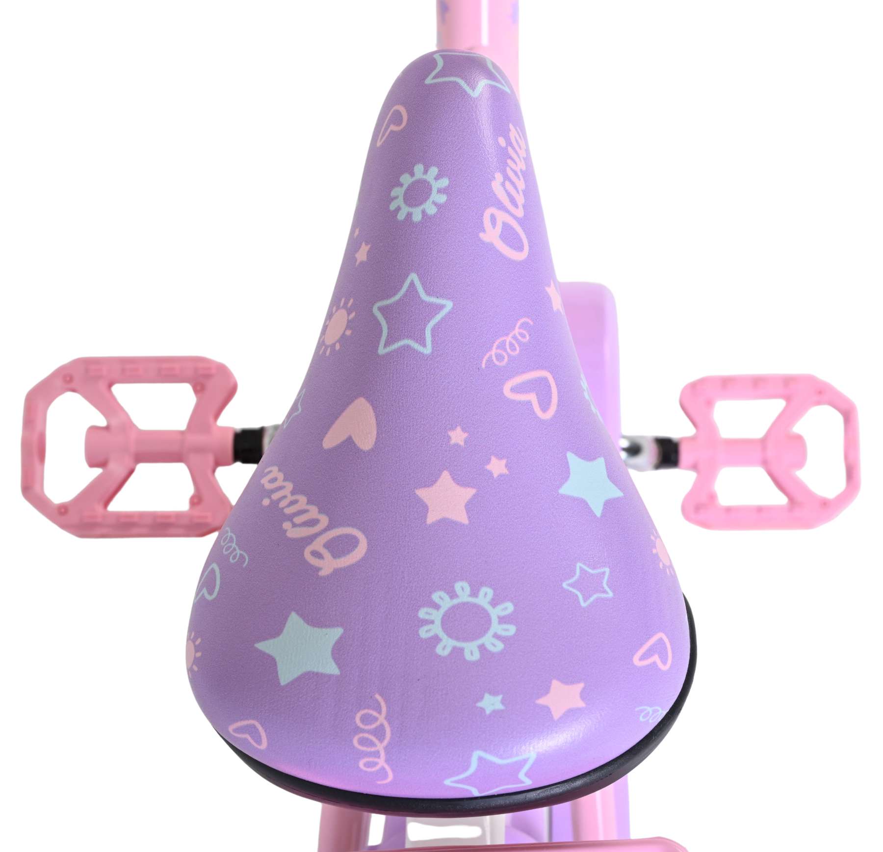 De Volare Olivia 16 inch kinderfiets is een schattige en stijlvolle fiets voor jonge meiden die vol trots willen fietsen. Met haar zachte roze kleur, paarse handvaten, zadel en spatborden is deze fiets een echte blikvanger.