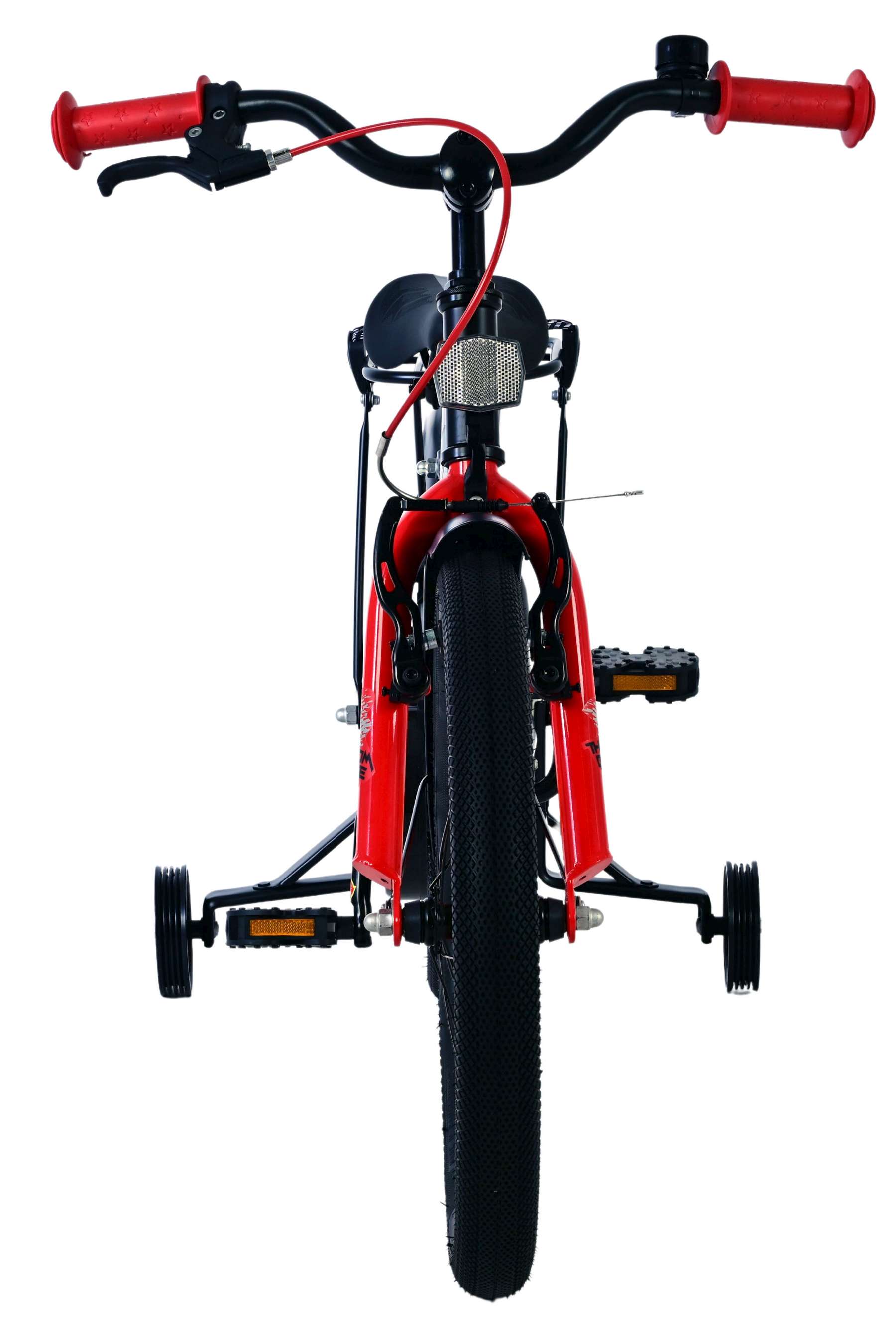 Veiligheid staat voorop! Daarom heeft deze gave fiets een handrem en terugtraprem, een gesloten kettingkast en afneembare zijwieltjes. Daarnaast heeft de fiets een leuke bel. Ook aan het comfort is gedacht. De mooie zwarte Volare fiets met rode accenten heeft een luxe zacht zadel, een handige achterdrager met snelbinders, en een tijdloos en stevig frame dat wel tegen een stootje kan. Om zo lang mogelijk van de fiets te kunnen genieten heeft de fiets een extra lange zadelpen waardoor de fiets nóg langer met het kind meegroeit en ook het stuur is in hoogte verstelbaar. Wordt geleverd inclusief al het montagemateriaal dat nodig is om de fiets in elkaar te zetten!
