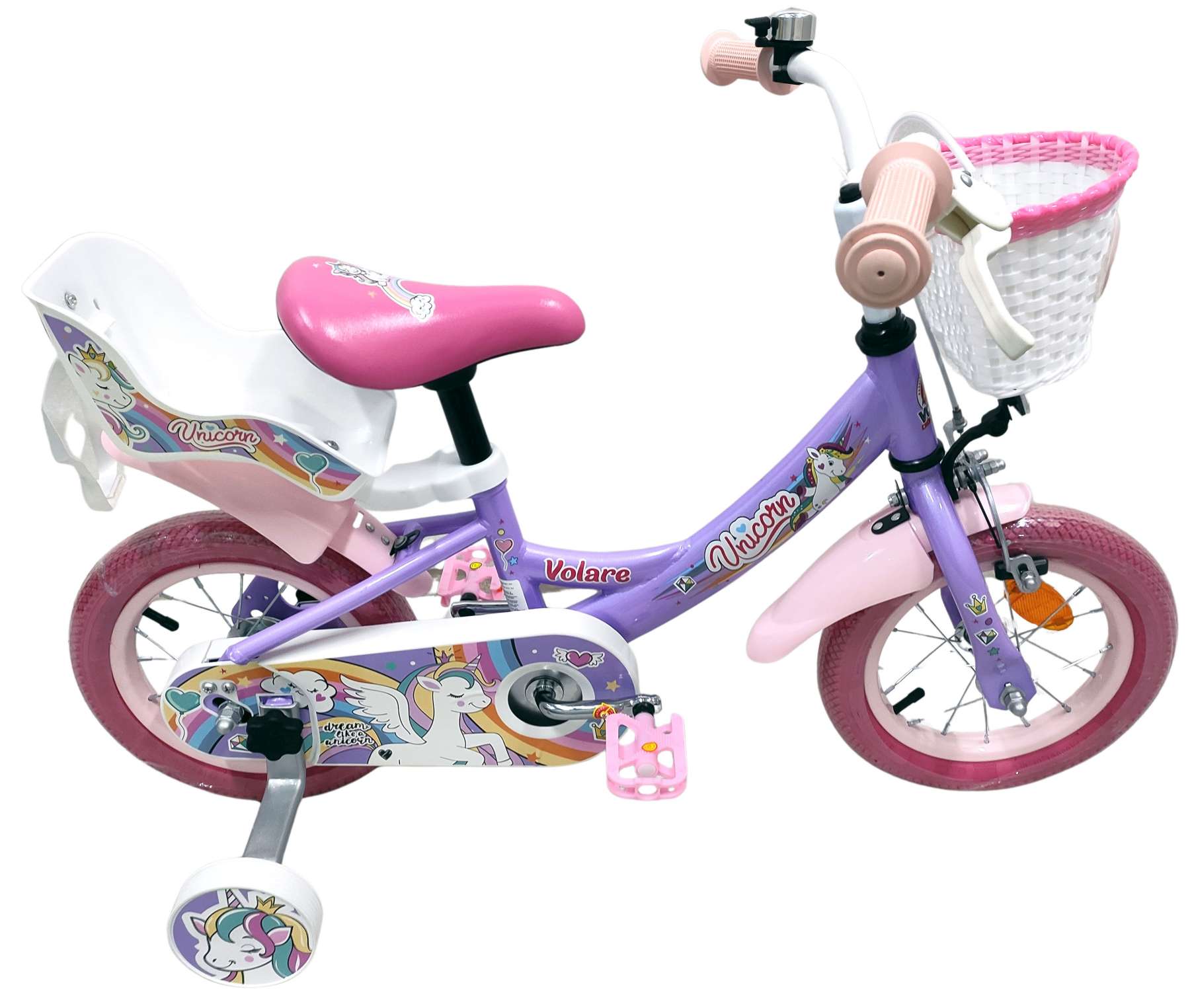 De Volare Unicorn 12 inch kinderfiets combineert veiligheid, comfort en een betoverende uitstraling – perfect voor elk avontuur in unicorn-stijl.